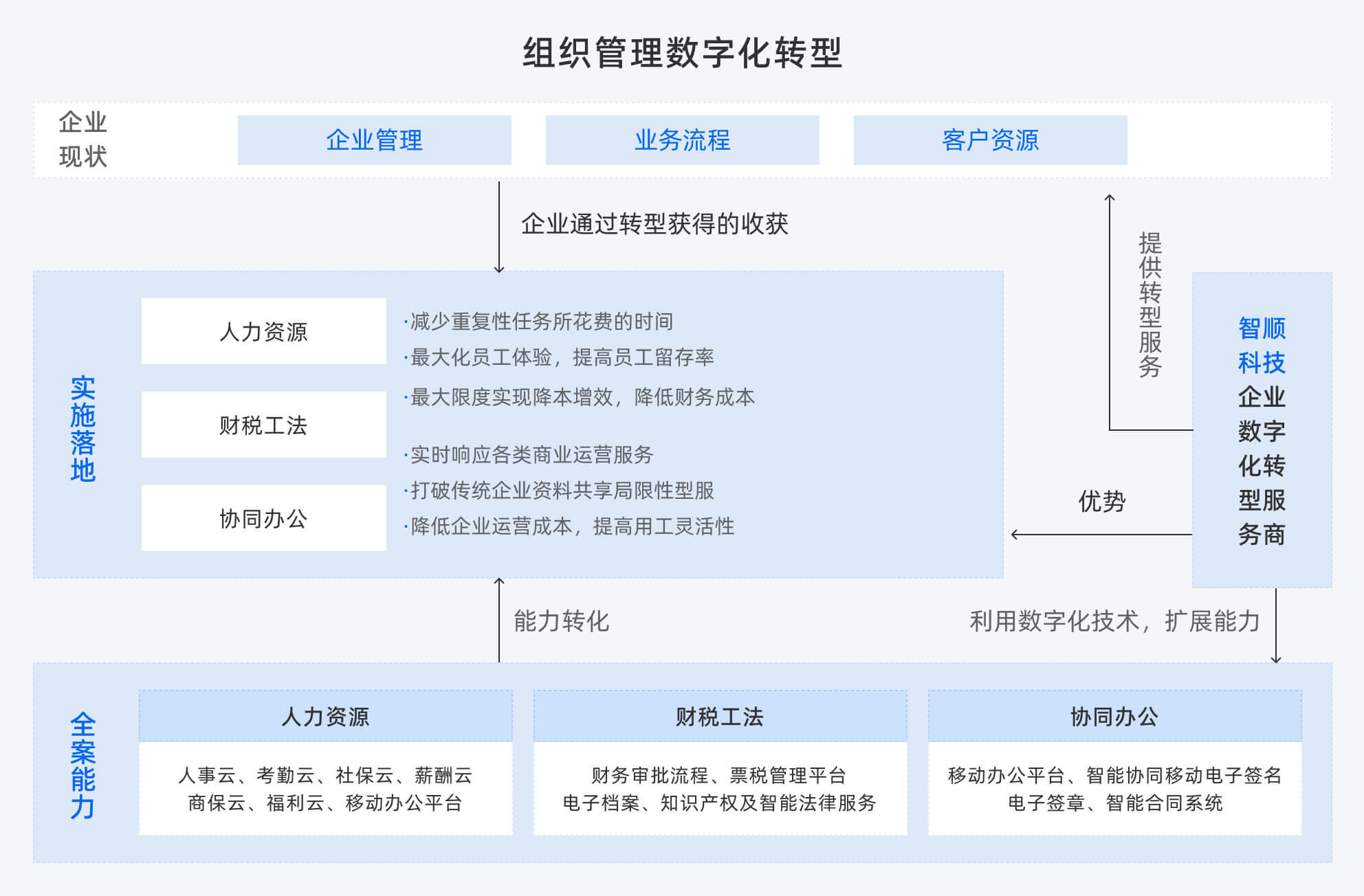 智順科技基于長(zhǎng)期的互聯(lián)網(wǎng)行業(yè)經(jīng)驗(yàn),利用數(shù)字和科技的力量,為客戶提供數(shù)字化轉(zhuǎn)型升級(jí)解決方案全案服務(wù),為企業(yè)數(shù)字化成長(zhǎng)提供了更多可能, 推動(dòng)企業(yè)實(shí)現(xiàn)內(nèi)外部的廣泛在線連接、智能化決策、高效率運(yùn)營(yíng)和管理,以及提供創(chuàng)新性的組織管理模式和商業(yè)模式